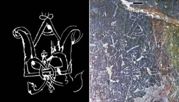 (на фото - Графити с символом тризуба в древних соборах Киева)