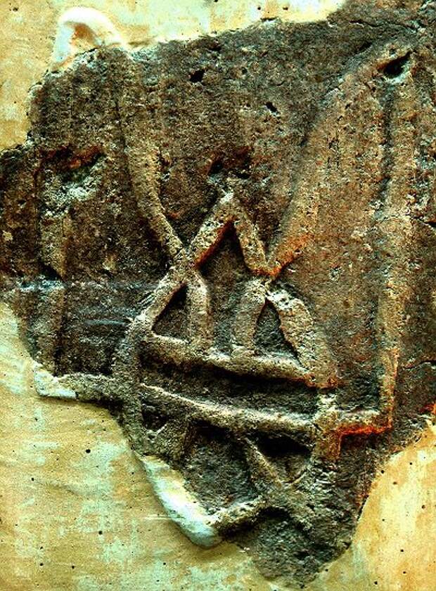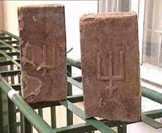 (на фото - Кирпичи древней кладки с тризубами, Волынь)