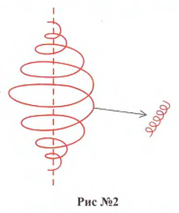 Спираль эта увеличивается и сужается (рис. 2). Энергия в любом замкнутом контуре идёт как вовне, так и вовнутрь, значит на оси всегда проецируется информация, поэтому, как уже было сказано выше, так называемые ясновидящие, которые видят прошлое и будущее, имеют доступ к оси времени и доступ не просто, а умеют считывать образную информацию, которая там находится. Этой спиралью, согласно древним текстам, пользуются для воплощения и реинкарнации, т.е. один человек может воплотиться как в далекое будущее, так и в далекое прошлое. Эти же мысли подтверждаются и этимологическим значением слова "время" у разных народов.
