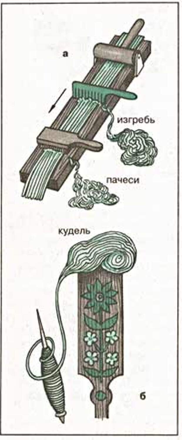 Из коротких и грубых волокон – изгребья и пачесей – ткали грубое и более редкое полотно – так называемую ряднину, которая шла на мешки, одеяла, подстилки и накидки на возы.