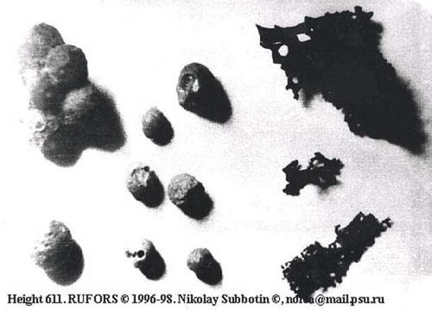 Если учесть, что направление от этого месторождения к высоте 611 совпадает с траекторией полета светящегося шара, то вопросов становится еще больше. Любопытно отметить и то, что подобные артефакты находили также на Алтае, Северном Урале и даже под Москвой.