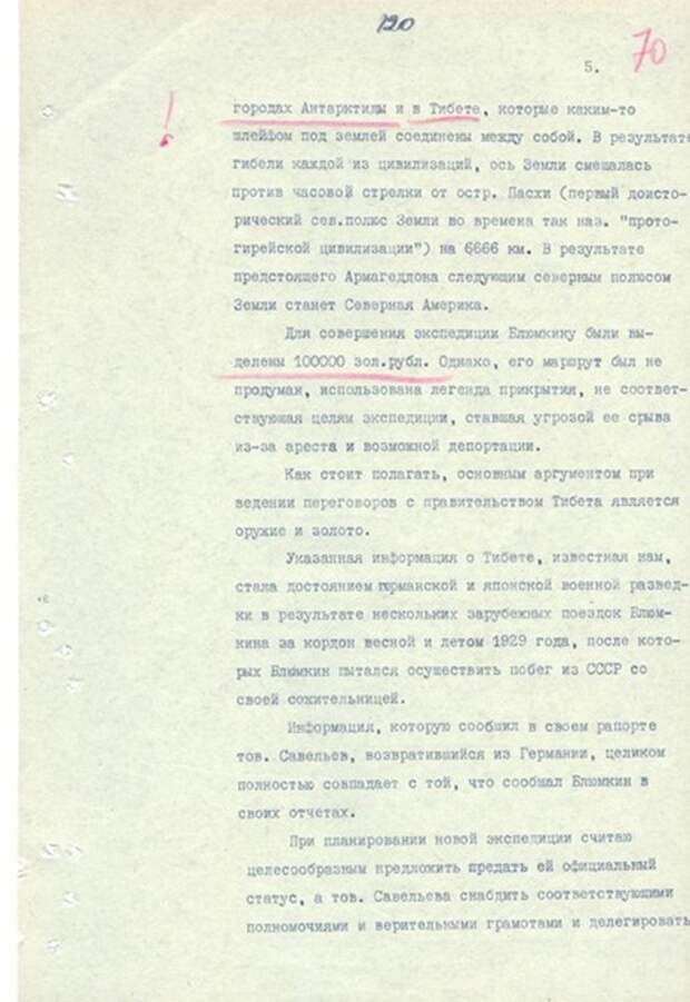 В служебной записке подводились итоги знаменитой экспедиции из десяти человек под руководством Якова Блюмкина, что была отправлена в 1925 году в Тибет на поиски артефактов предыдущих цивилизаций Земли и Города богов.